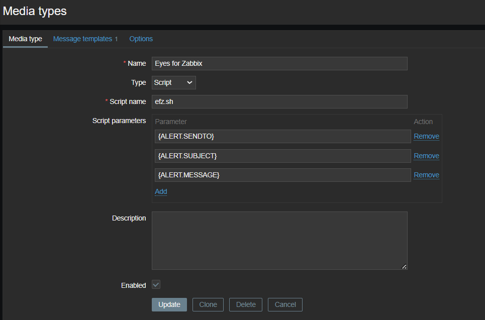 Go to Zabbix->Admisistartion->Media types->Create media type